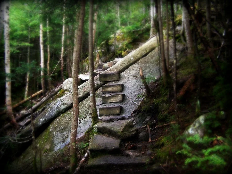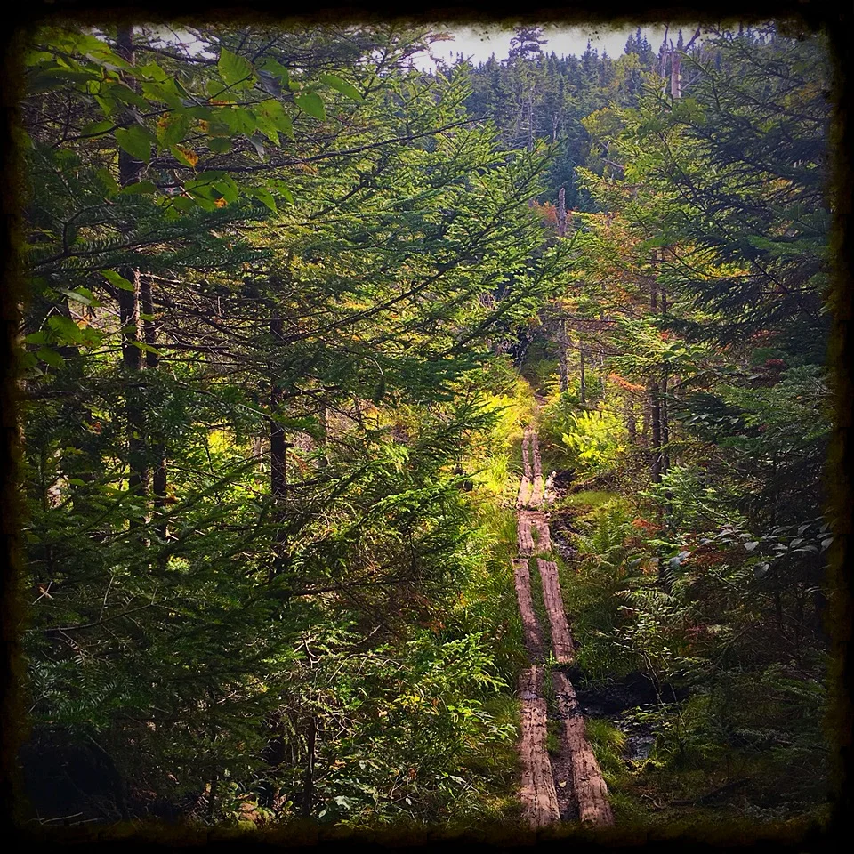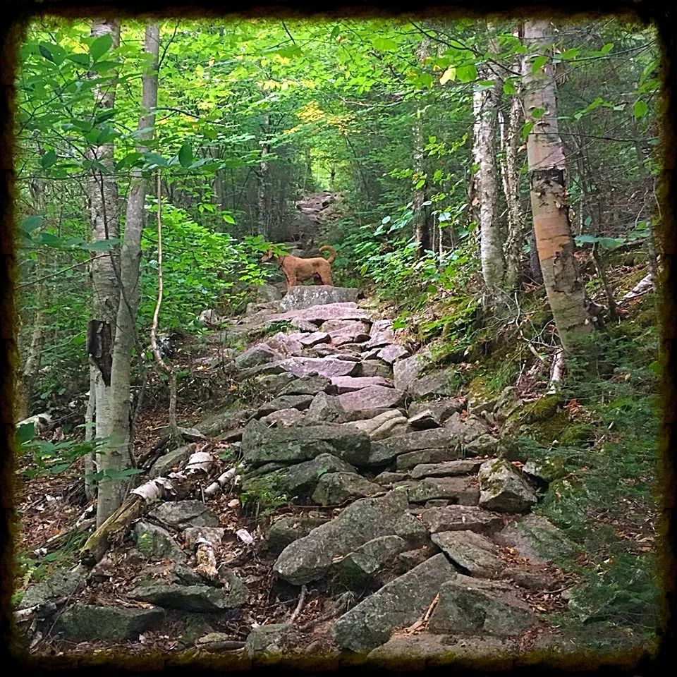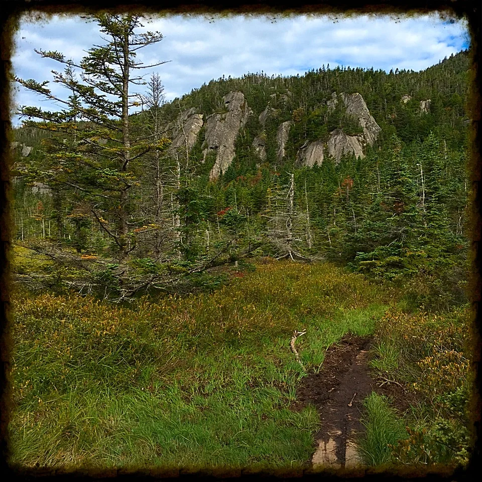 Especially on day two, which involved an intense 1,000 foot scrambly climb over one mile up to South Kinsman. Then after North Kinsman, one of those wold famous never-ending descents along granite slabs and weird steps nailed into the rocks along the Fishin’ Jimmy section of the trail.