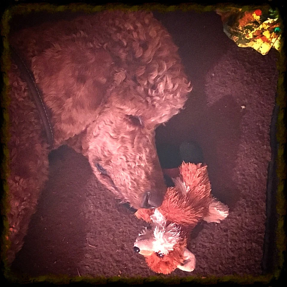 Rico found a bean-bag fox, and it’s become his new favorite thing in the world--a souvenir from his epic walk in the magical moss-blanket forest of New Hampshire.