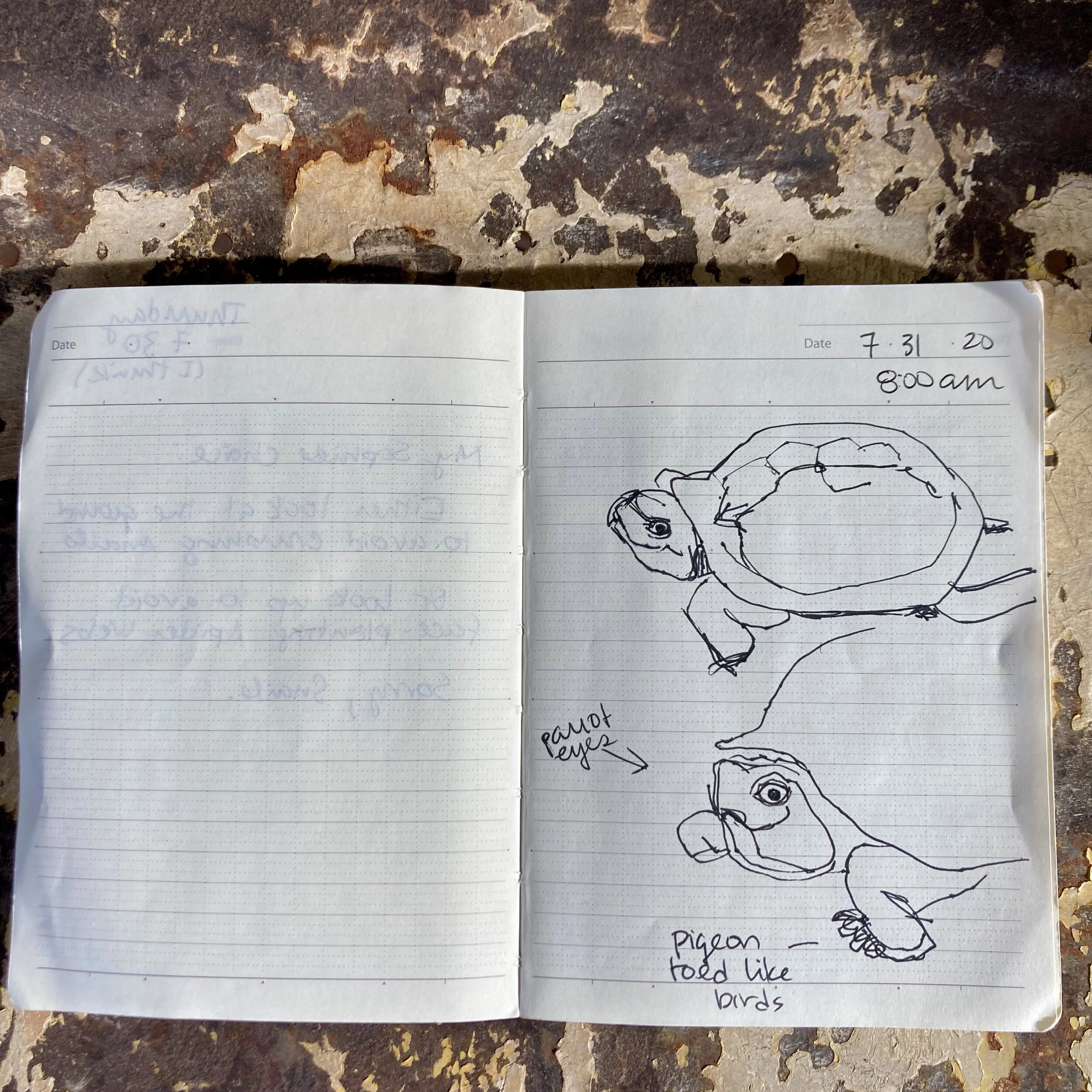 My most important notebook is my daily logbook, where, at the end of the day, I track the meta-data and reminisce about my day. It’s only recently that I’ve realized what I love about the logbook are the little sketches that accompany the words. So later I can flip through and, with no effort at all, glance at a picture and let the memories wash over me.