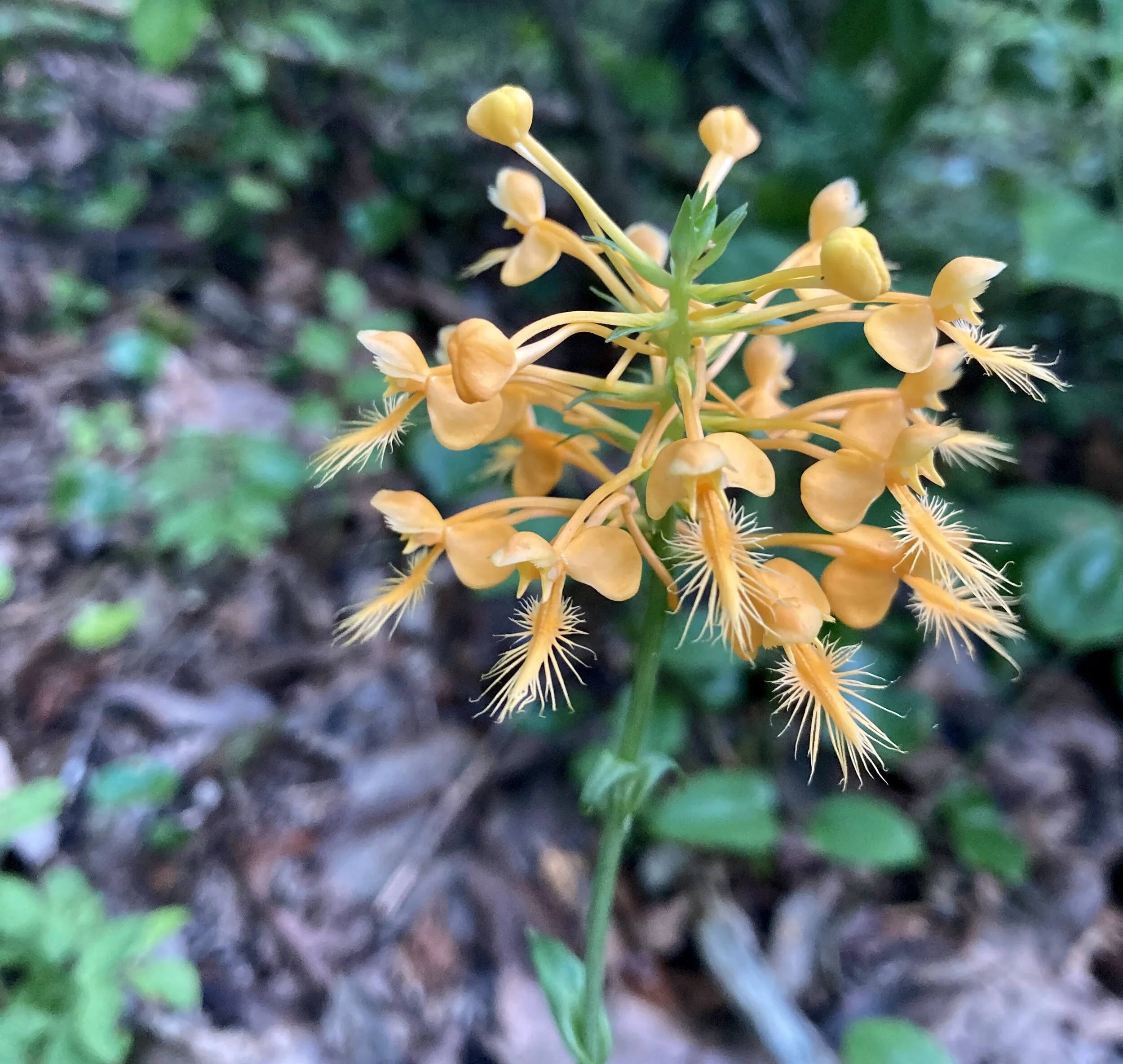 I want to remember at a glance the guys standing around an actual percolator. The three little bears up a tree, stacked one on top of another, heads all turned in my direction. The orange flower I’d never seen that turned out to be a yellow-fringed orchid, elusive and ephemeral and rare.